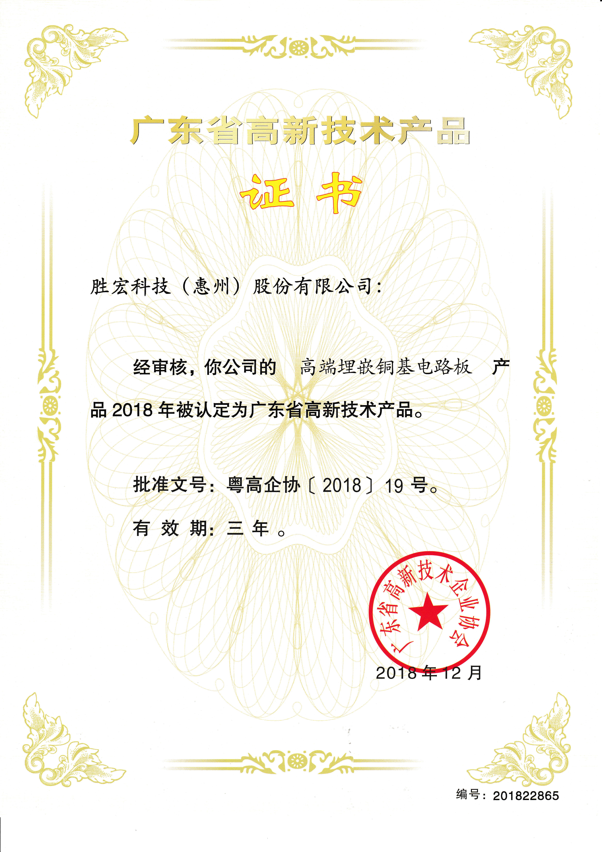 "High-end Embedded Copper Circuit Board" Reputable High-Tech Product Certificate