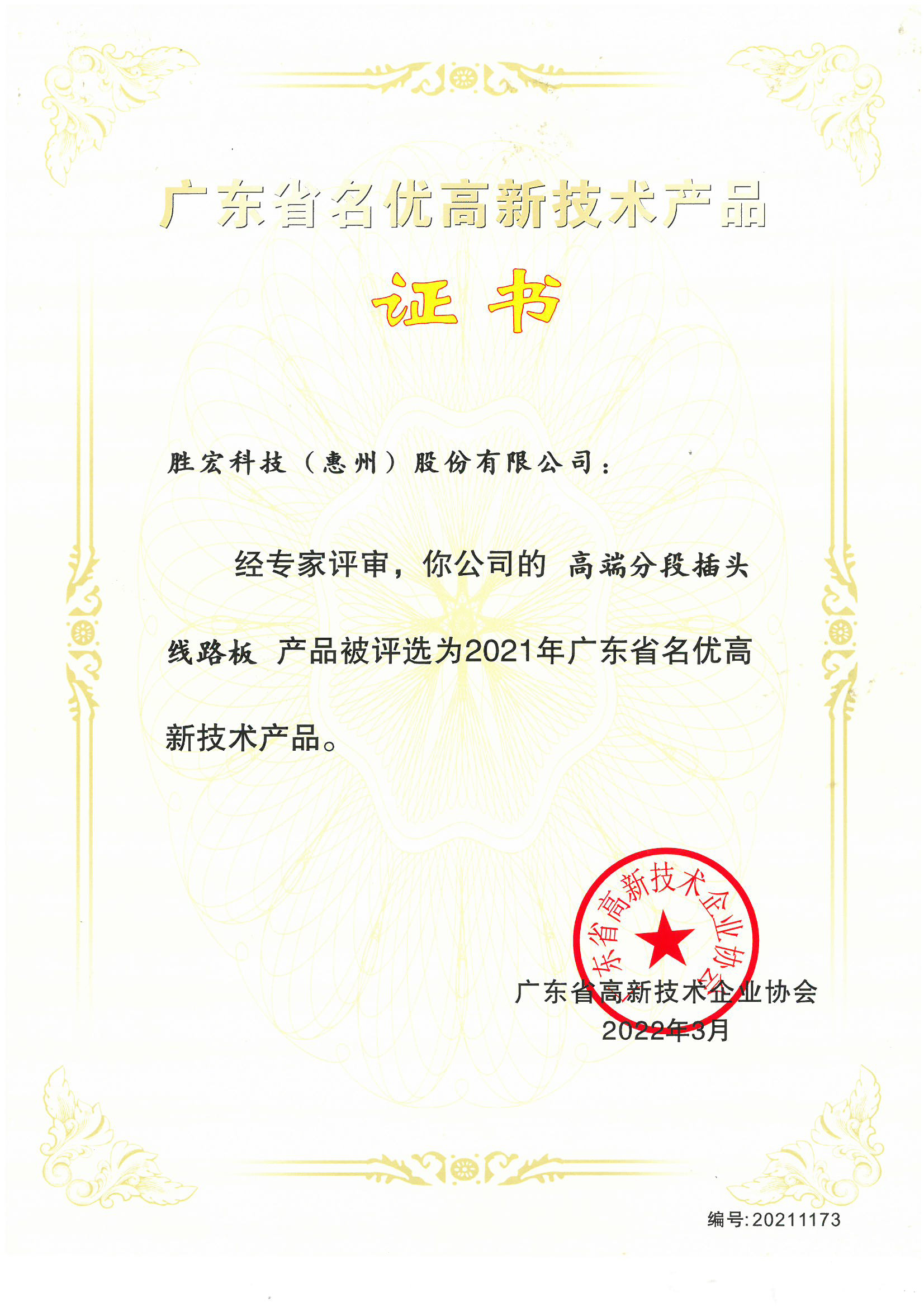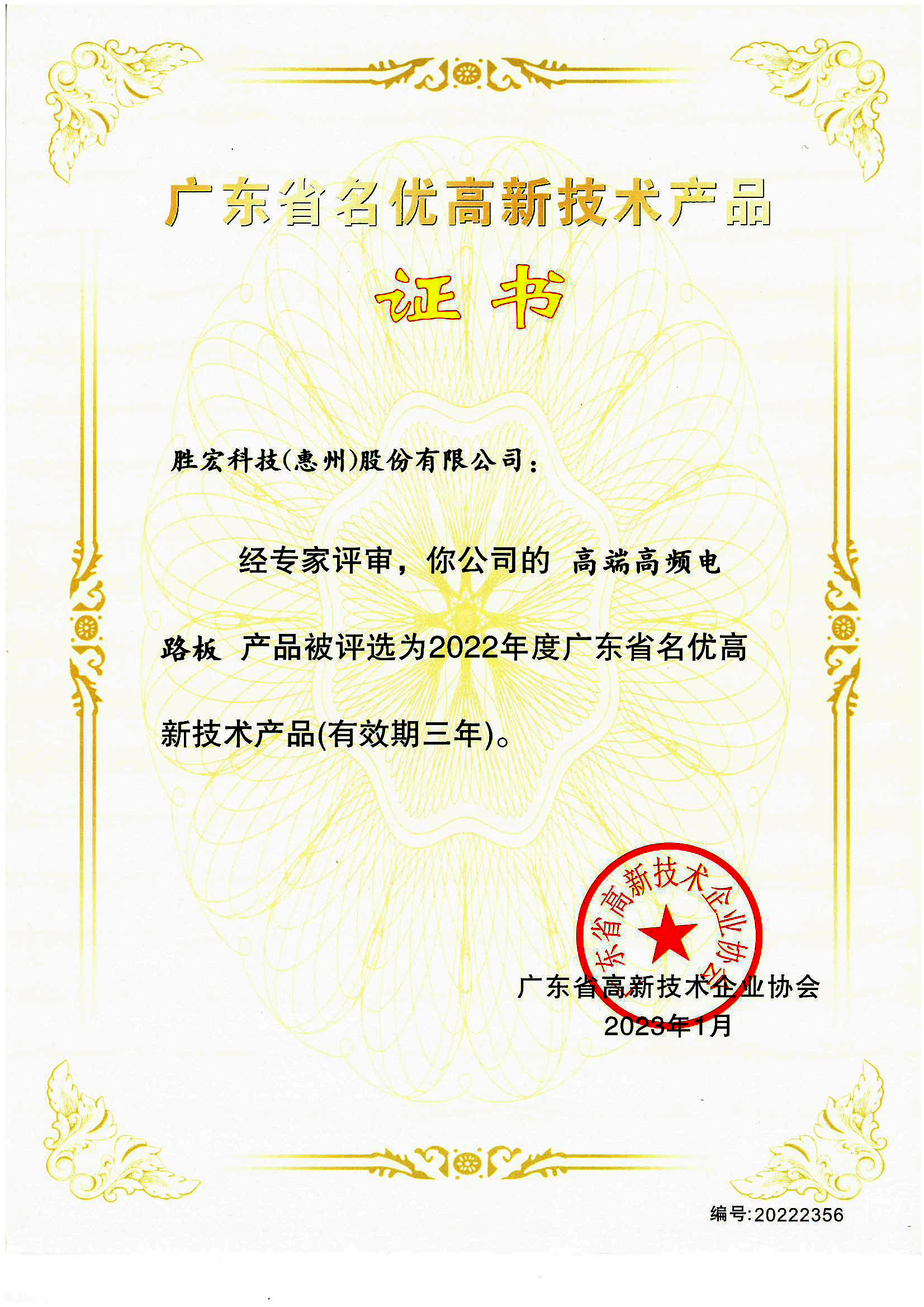 “Advanced High-Frequency PCB” Reputable High-Tech Product Certificate