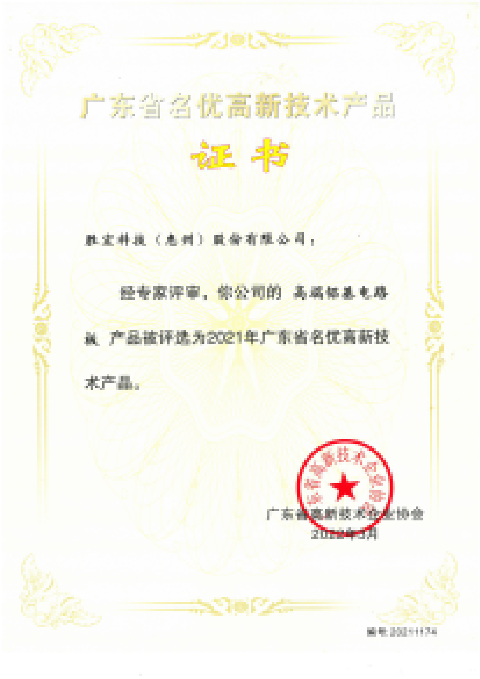 "High-end Aluminum-based Circuit Board" Reputable High-Tech Product Certificate