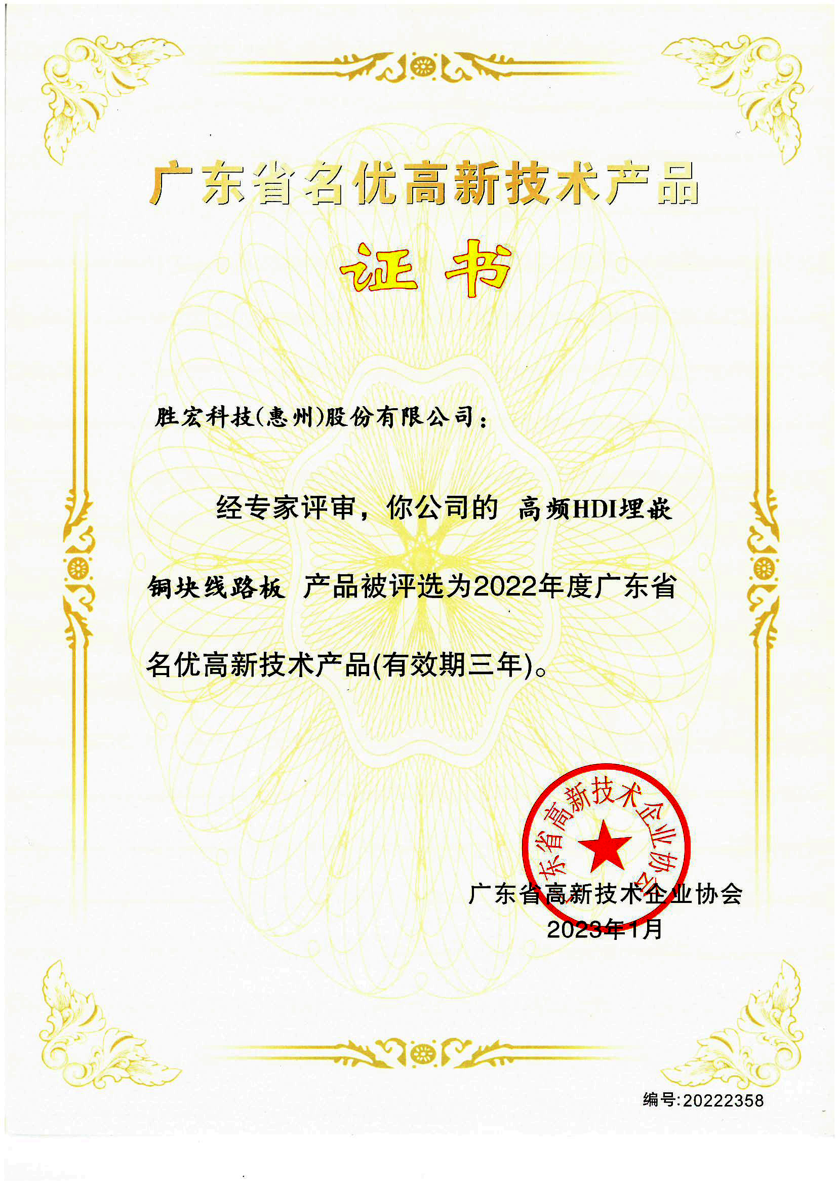 ”High-Frequency HDI Copper Coin PCB” Reputable High-Tech Product Certificate