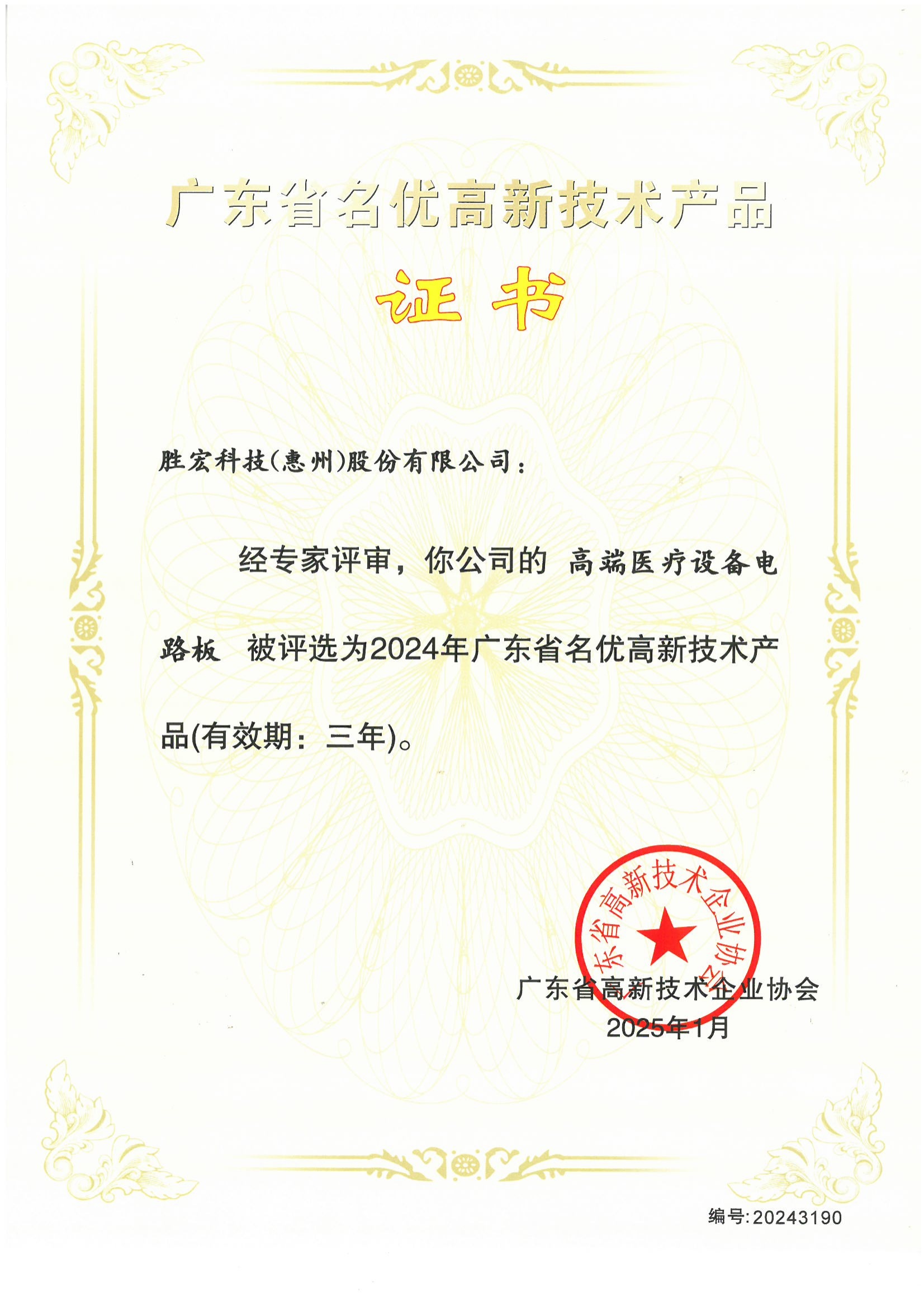“High-end medical equipment circuit board“ Reputable High-Tech Product Certifica