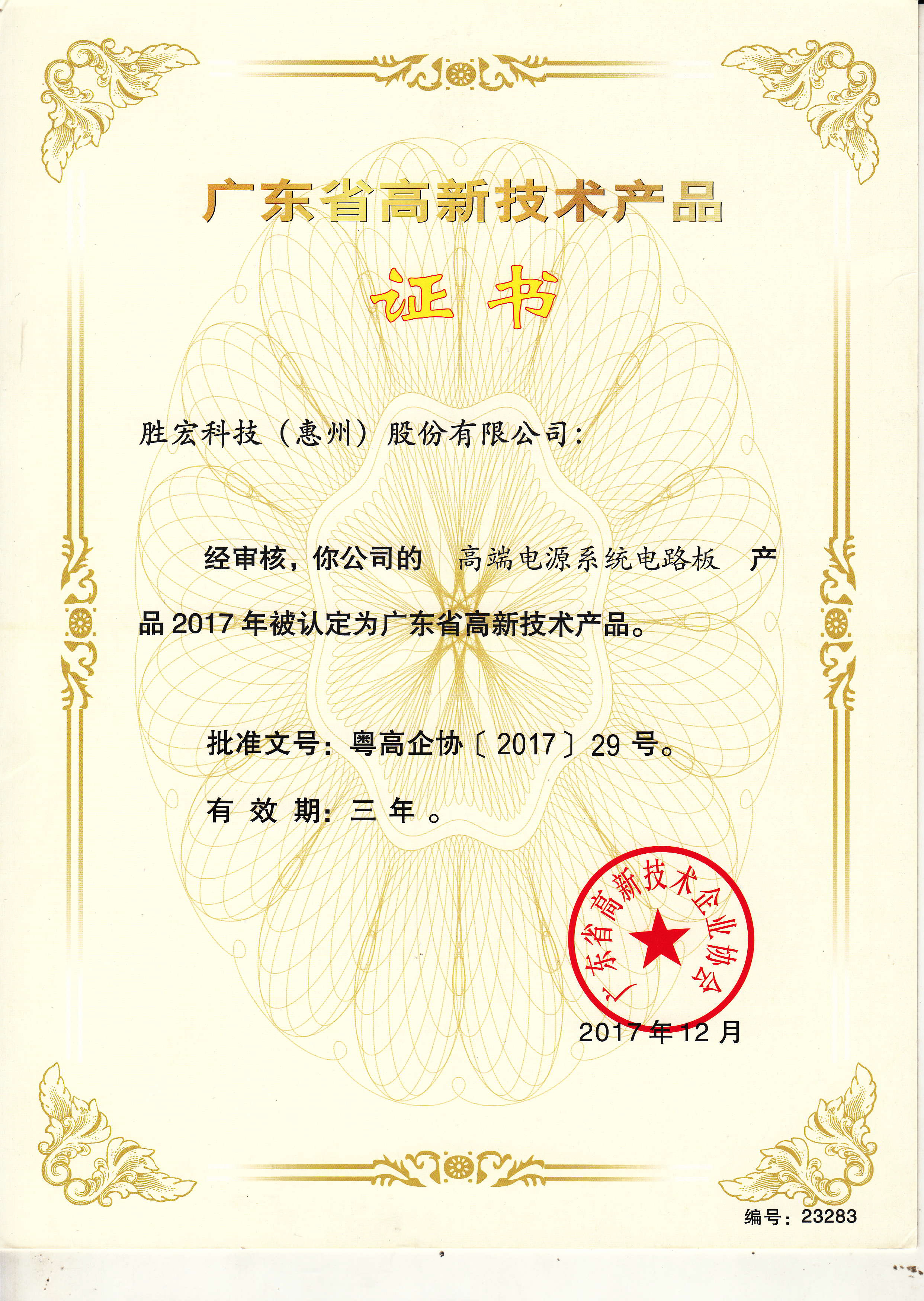 "High-end Power System Circuit Board" Reputable High-Tech Product Certificate
