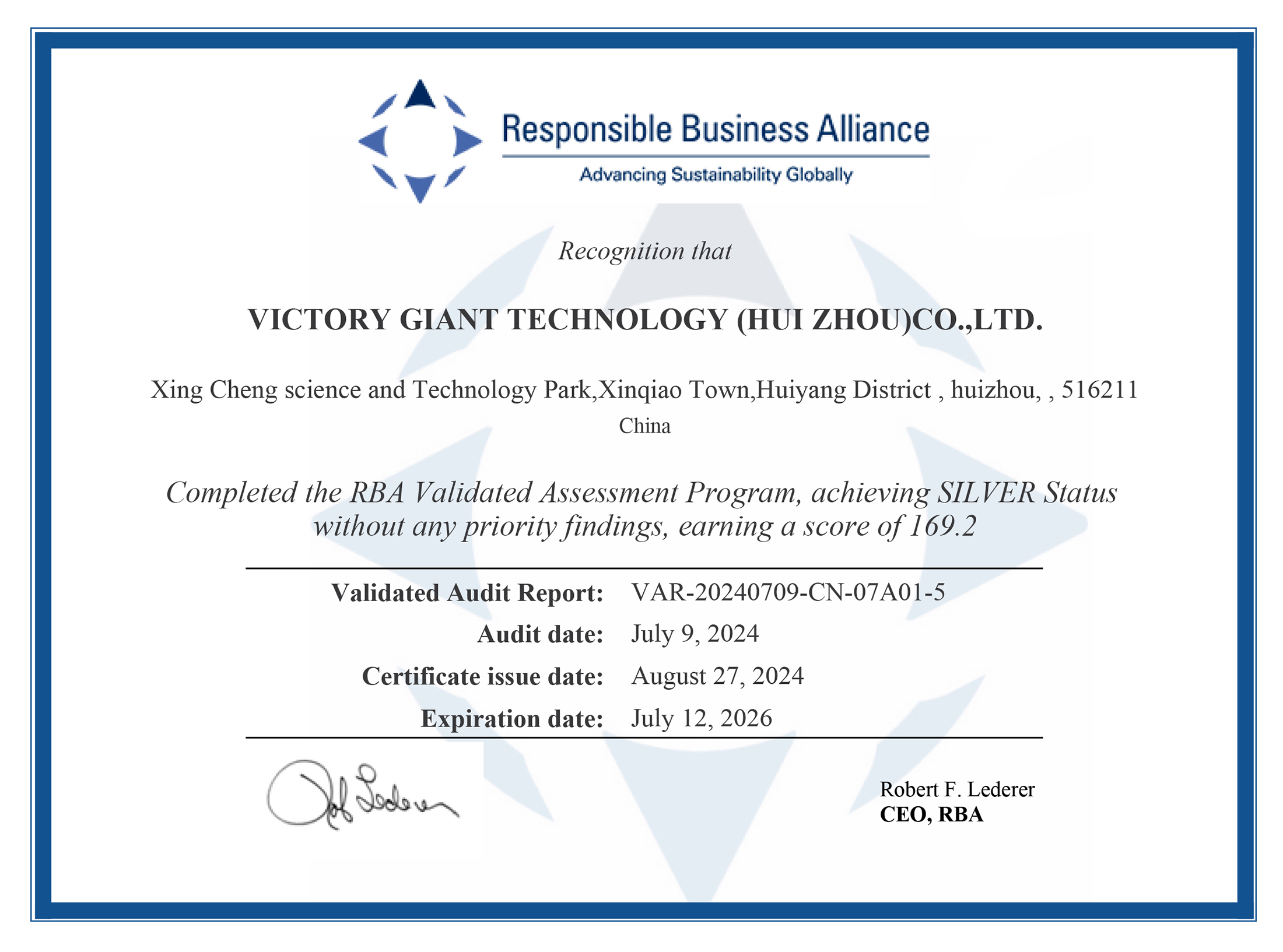 RBA VAP監察証明書