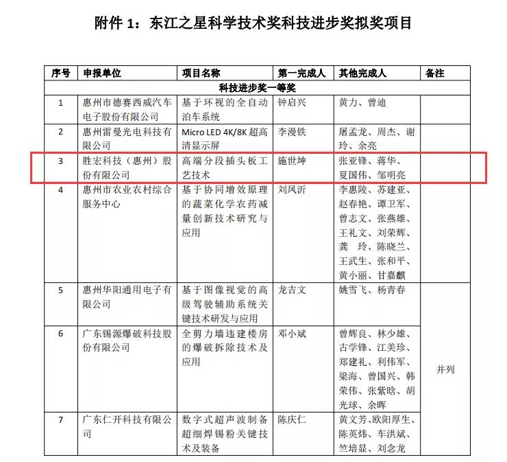 12月17日, 2021年東江之星科學技術(shù)獎經(jīng)過形式審查、技術(shù)評審、綜合評審等環(huán)節(jié),評出擬獎項目共25項,其中科技進步獎一等獎擬獎項目7項,科技進步獎二等獎擬獎項目10項,自主創(chuàng)新促進獎8項。我司的“高端分段插頭板工藝技術(shù)”項目擬獲評科技進步一等獎。