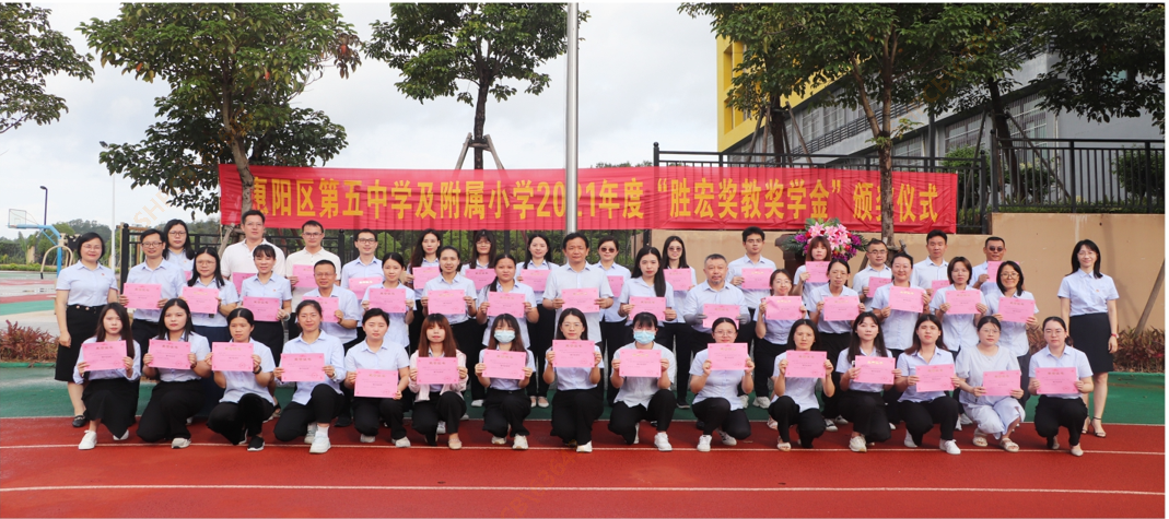 為傳承尊師重教的中華民族優(yōu)良傳統(tǒng),營造崇學(xué)尚學(xué)之風(fēng),助力惠陽區(qū)第五中學(xué)及附屬小學(xué)(以下簡稱惠陽五中)提高教學(xué)水平,我司于2020年8月在惠陽五中設(shè)立“金年會獎教獎學(xué)金”,從2021年至2025年,連續(xù)五年每年捐贈人民幣50萬元,其中每年40萬元用于獎教,10萬元用于獎學(xué),捐贈總額為250萬元。2022年6月20日上午,為表彰先進(jìn),樹立榜樣,惠陽五中全體師生齊聚小學(xué)部田徑運(yùn)動場,隆重舉行2021年度“金年會獎教獎學(xué)金”頒獎儀式,人力資源總監(jiān)王耘代表金年會科技參加了此次頒獎儀式。