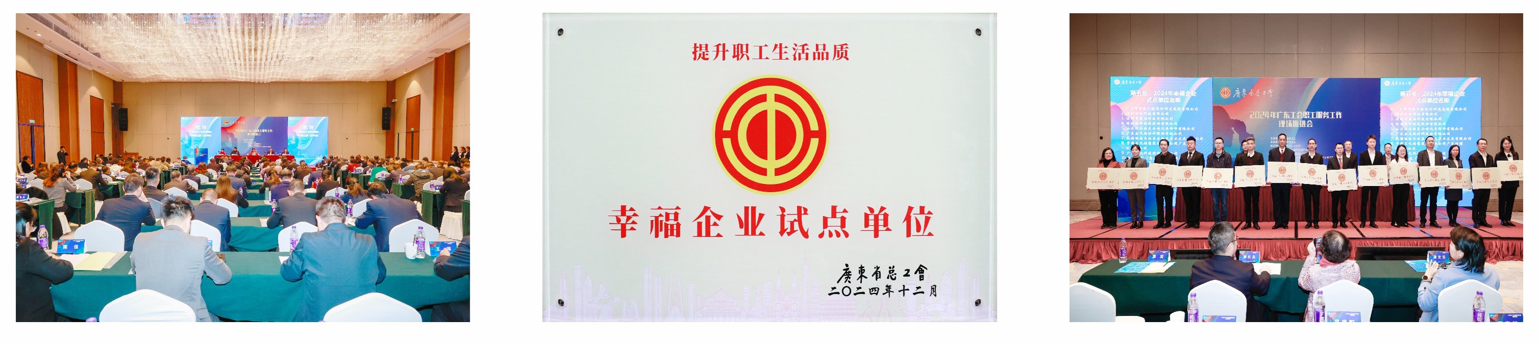 會上,經省總黨組會議研究決定,對在提升職工生活品質工作中表現突出的單位進行表彰。其中,10家單位榮獲廣東第三批提升職工生活品質服務職工綜合體試點單位稱號,30家單位獲評廣東第三批提升職工生活品質幸福企業試點單位。我司憑借在職工服務領域的接觸表現,榮獲“廣東省2024年幸福企業試點單位”稱號。